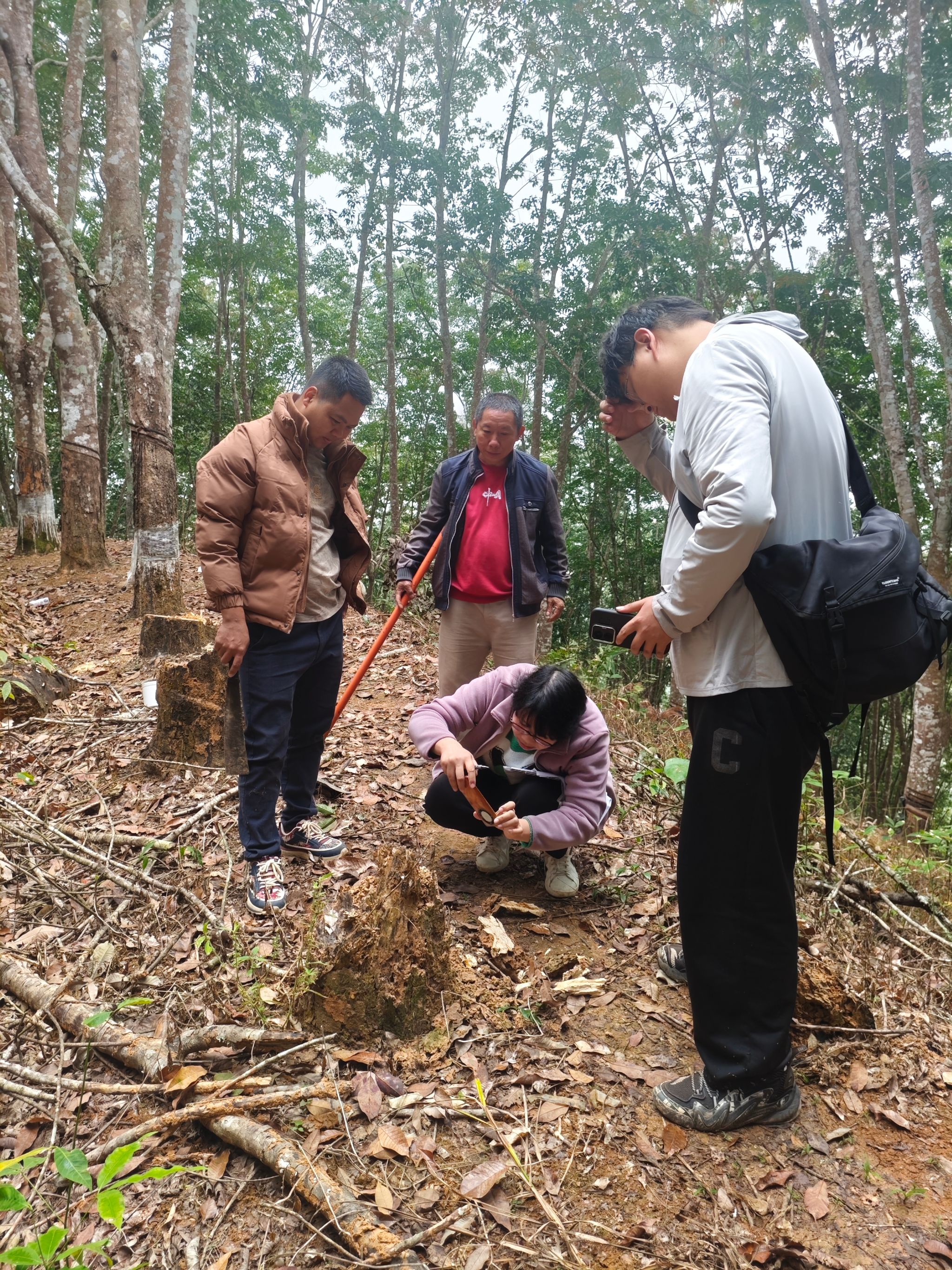 2025年12月29日-30日,国家天然橡胶产业技术体系普洱综合试验站陈红梅及农学241专升本学生瞿永庆、龙兴瑶一行到江城橡胶公司进行橡胶根病分级调查,为后续的根病防控奠定基础。
