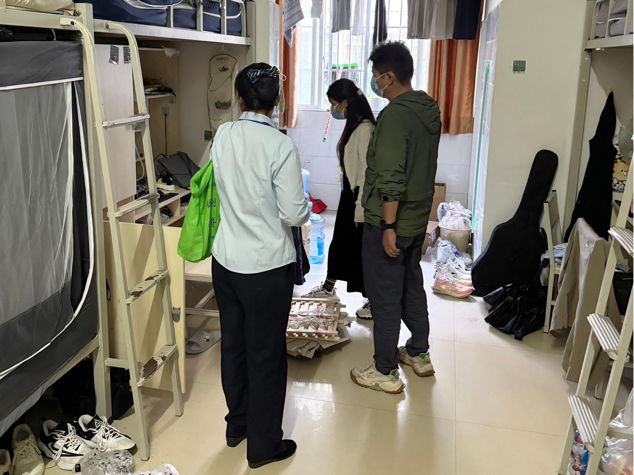 检查范围覆盖学院十栋学生宿舍,累计检查宿舍1022间,重点围绕宿舍内是否存在违规使用电器、私拉乱接电线、存放管制刀具等安全隐患展开全面排查,同时对宿舍消防设施配备、安全通道畅通情况等进行同步核查。
