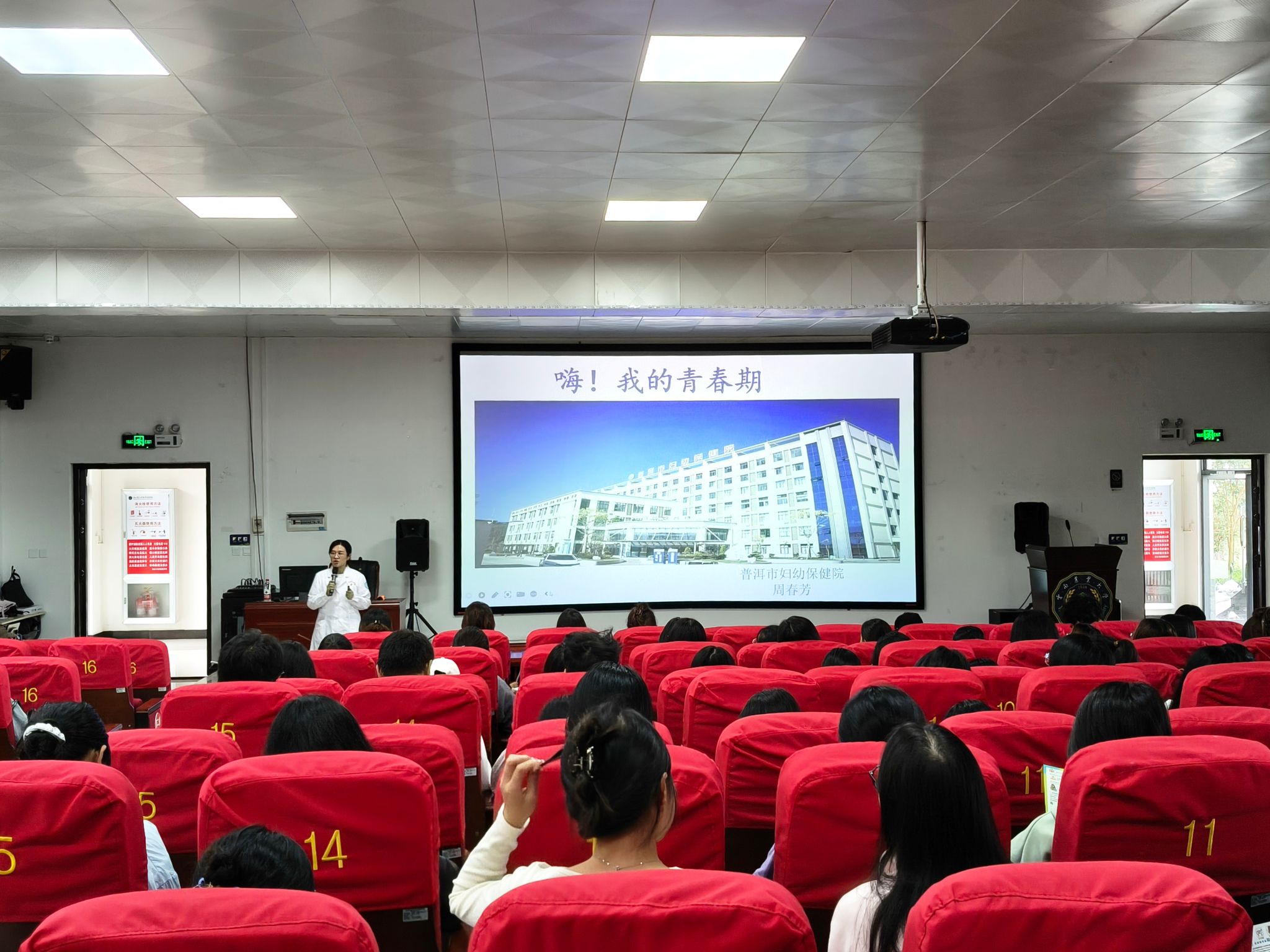 2025年10月15日,热带作物学院特邀普洱市保健院妇女保健部周春芳主任,在喜礼楼一楼报告厅开展“解码青春期”主题讲座,230 余名学生现场参与。