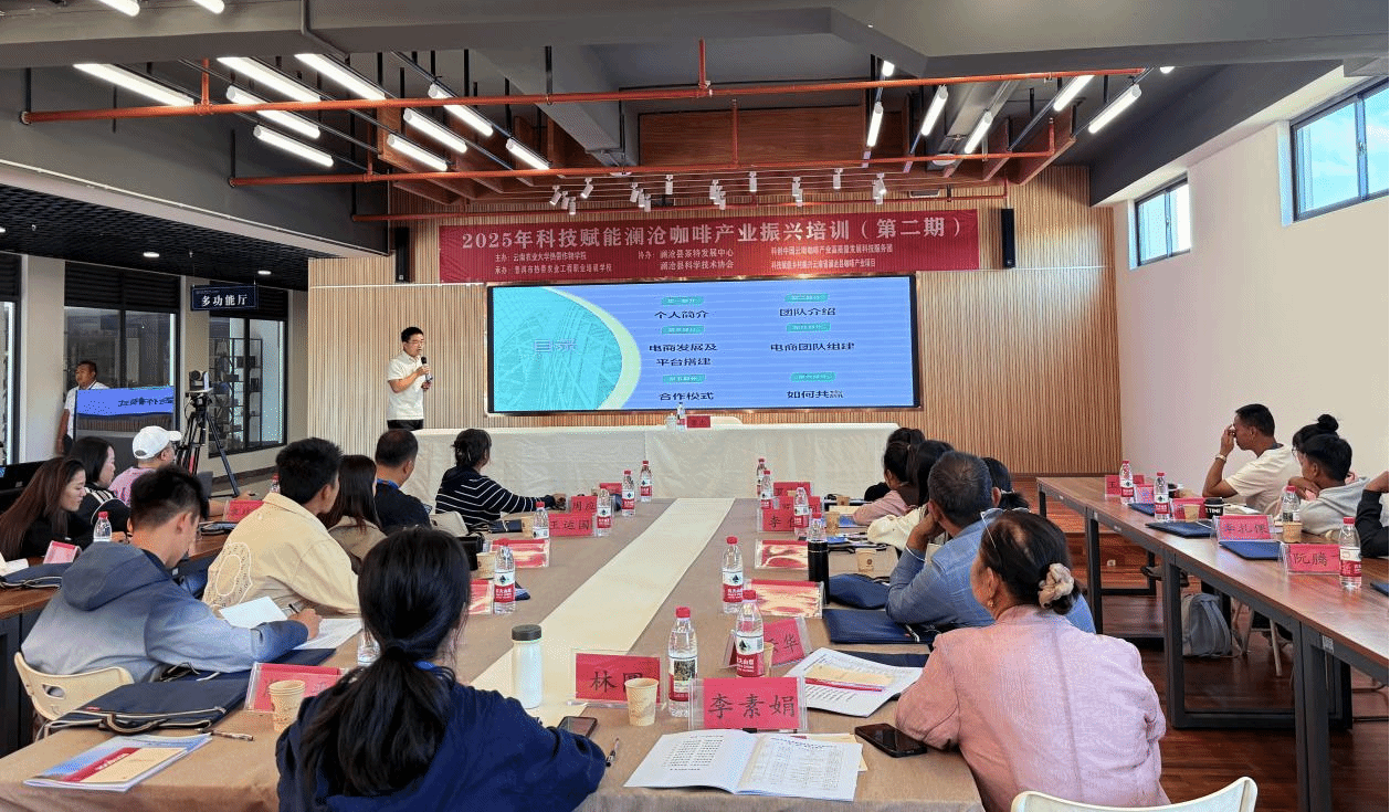 在理论授课阶段,行业专家围绕“电商助农”、“土壤与植物营养问题与对策”、“咖啡品牌文化建设”三大核心主题展开讲解,精准破解学员在产销对接中的痛点难题,帮助学员系统掌握种植生态化转型路径与品牌增值策略,为产业发展注入理论动能。