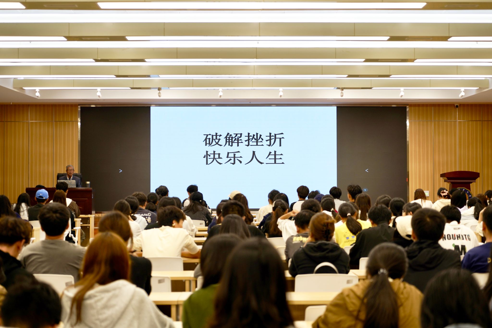苏升乾以“什么是人生?”切入,剖析人生走向决定因素与价值,融合传统文化中人生社会价值理念,阐释成长规律,界定“挫折”并提应对之策,强调“挫折是快乐人生必经之路”,引导学生正向看待困难;在方法论环节,他围绕“坚持、坦然、胸怀、调整”给破解挫折路径,叮嘱应对挫折需守边界、适环境、修品格;互动环节,学生就学业压力平衡、人际矛盾调整提问,他结合经验解答,氛围热烈,助学生解困惑。