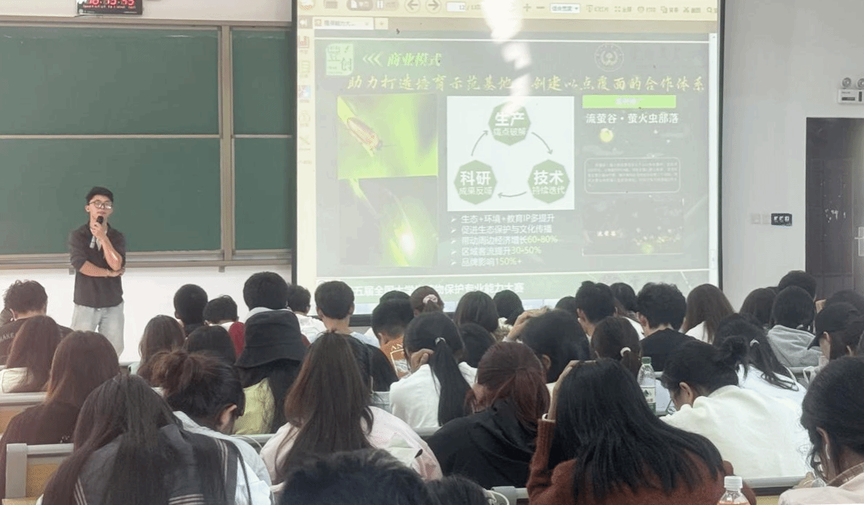 培训特邀学院科研信息与社会服务科朱有才教授担任主讲,并邀请优秀校友、“萤火虫生态密码的解读者”项目负责人丰若玲分享参赛经验与创业心得。电子商务、风景园林、秘书学、旅游管理、农林经济管理、园林、林学、农学、食品科学与工程、咖啡科学与工程等专业近400名学生参加培训。