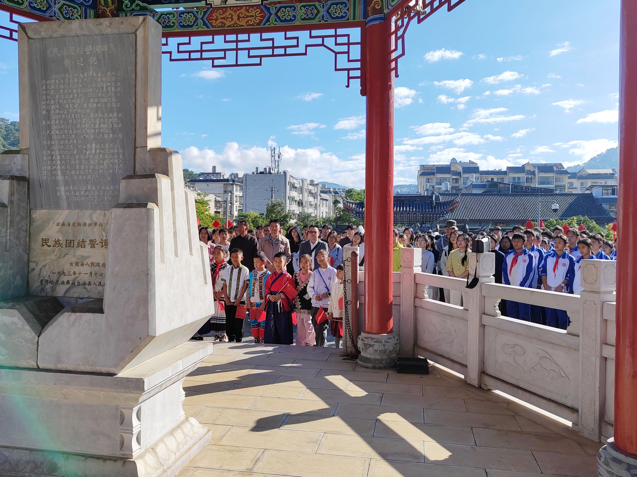 活动现场,师生们怀着崇敬的心情,瞻仰了巍然屹立的誓词碑,仔细观看了碑文和相关的历史资料图片。民族团结园讲解员结合碑文背后的历史故事和时代意义,进行了现场教学,引导学生深刻理解“多元一体”的中华民族发展史,领会铸牢中华民族共同体意识的重大意义,以及维护民族团结对于国家稳定、边疆巩固、社会发展的极端重要性。