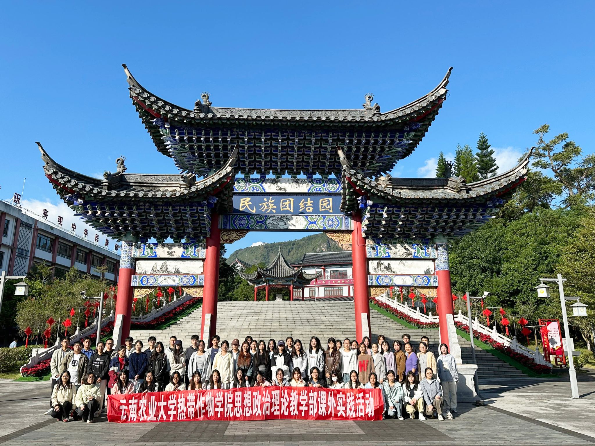 为深入深化大中小学思政课一体化建设,创新思政育人模式,2025年11月15日,热带作物学院与普洱市民族中学的师生代表共同前往宁洱哈尼族彝族自治县民族团结誓词园,开展了一堂生动而深刻的“行走的思政课”。