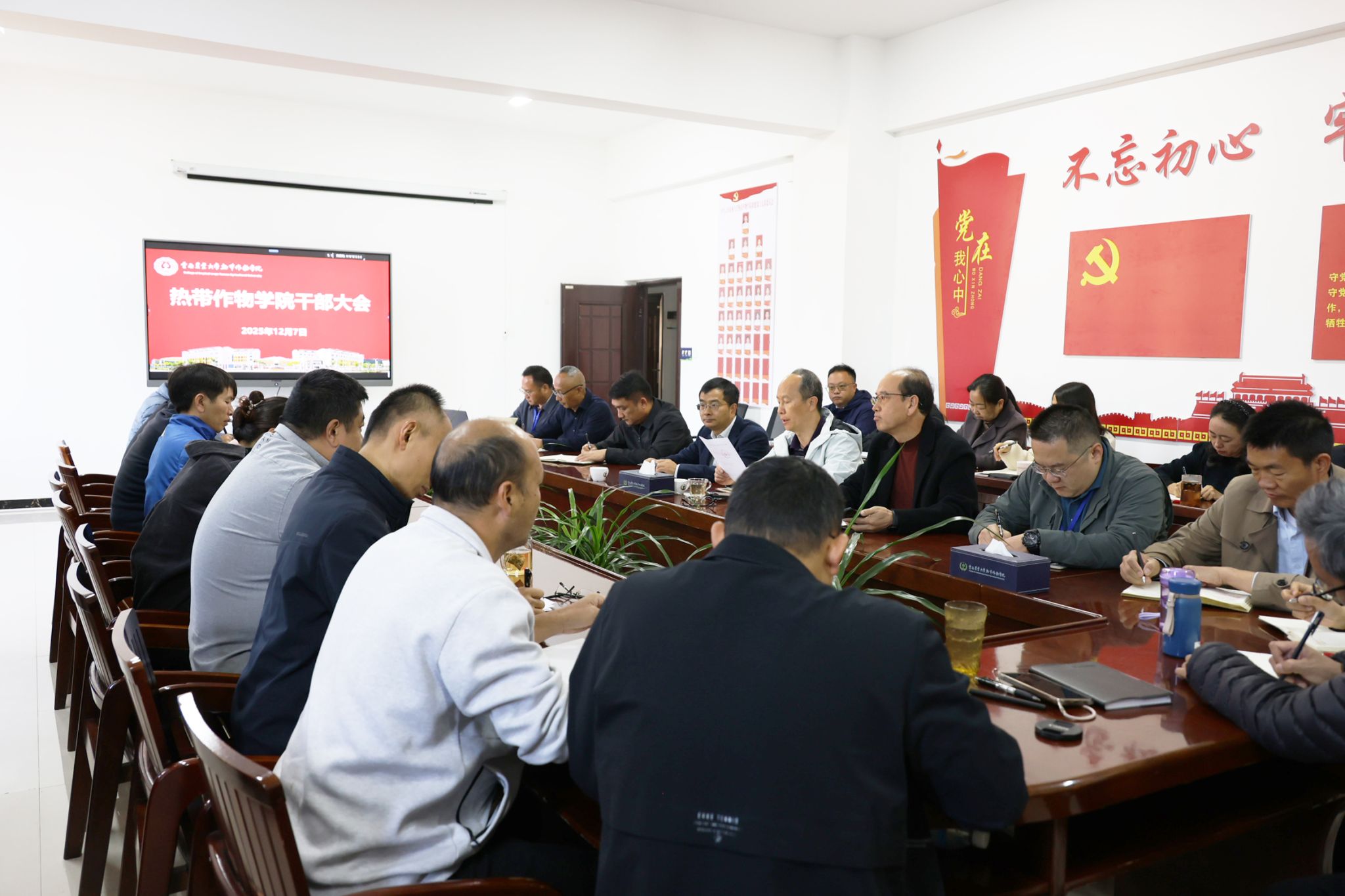 2025年12月7日上午,热带作物学院召开干部任命宣布大会,学校副校长李宏出席会议,热带作物学院党政领导班子成员、科级干部参加会议。会议由院长杨学虎主持。
