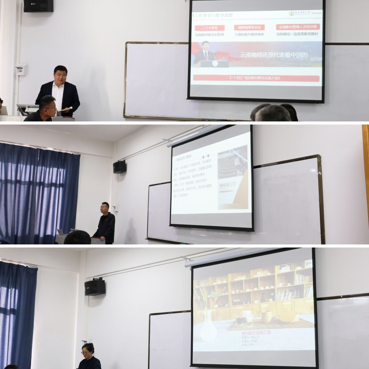 会议同步聚焦教材建设核心工作,专门听取了咖啡科学与工程专业系列教材建设整体进展报告。各分册编写负责人逐一汇报了当前编写进度、阶段性成果及存在的难点问题,与会人员围绕教材大纲优化完善、编写团队协同协作、内容体系提质升级等关键议题深入研讨,进一步明确了后续编写任务分工、质量标准及进度节点的统筹推进安排。