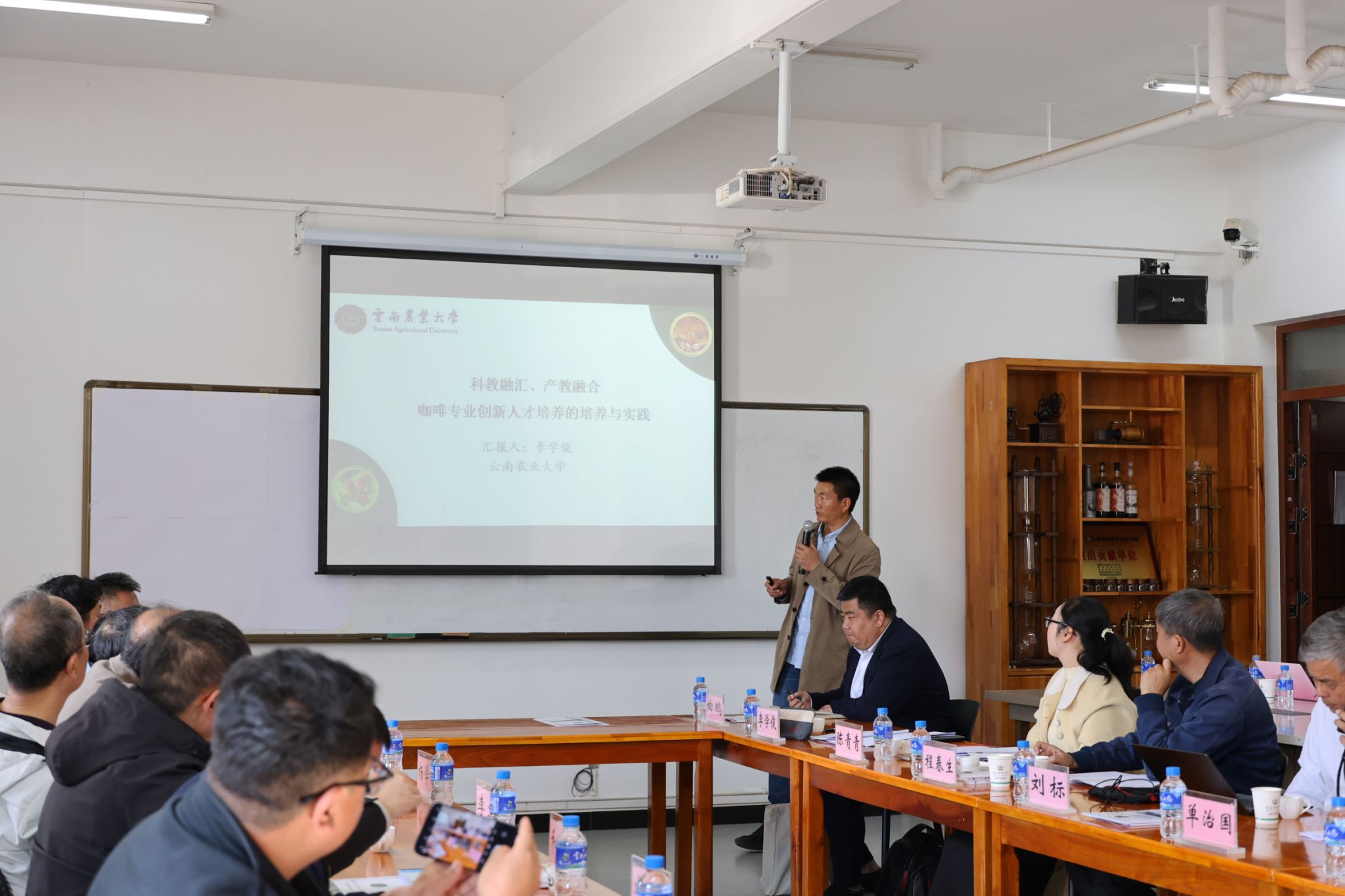 2025年12月6日下午,咖啡科学与工程专业人才培养及教材研讨会在云南农业大学热带作物学院举行,云南农业大学副校长李宏、热带作物学院院长杨学虎,昆明理工大学、普洱学院、保山学院等单位受邀代表,以及学院教材编写相关教职工代表出席会议。会议由热带作物学院副院长李学俊主持。