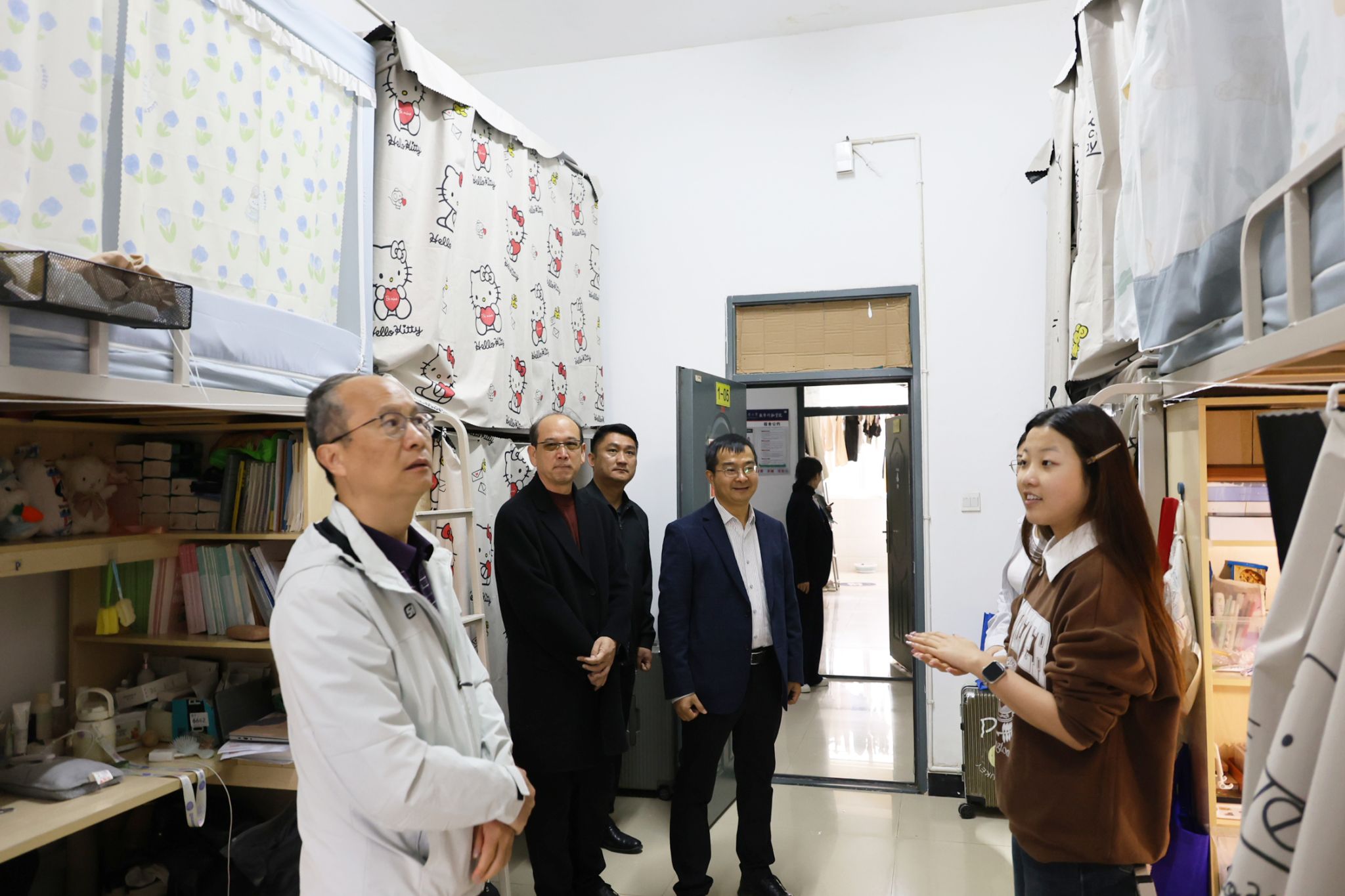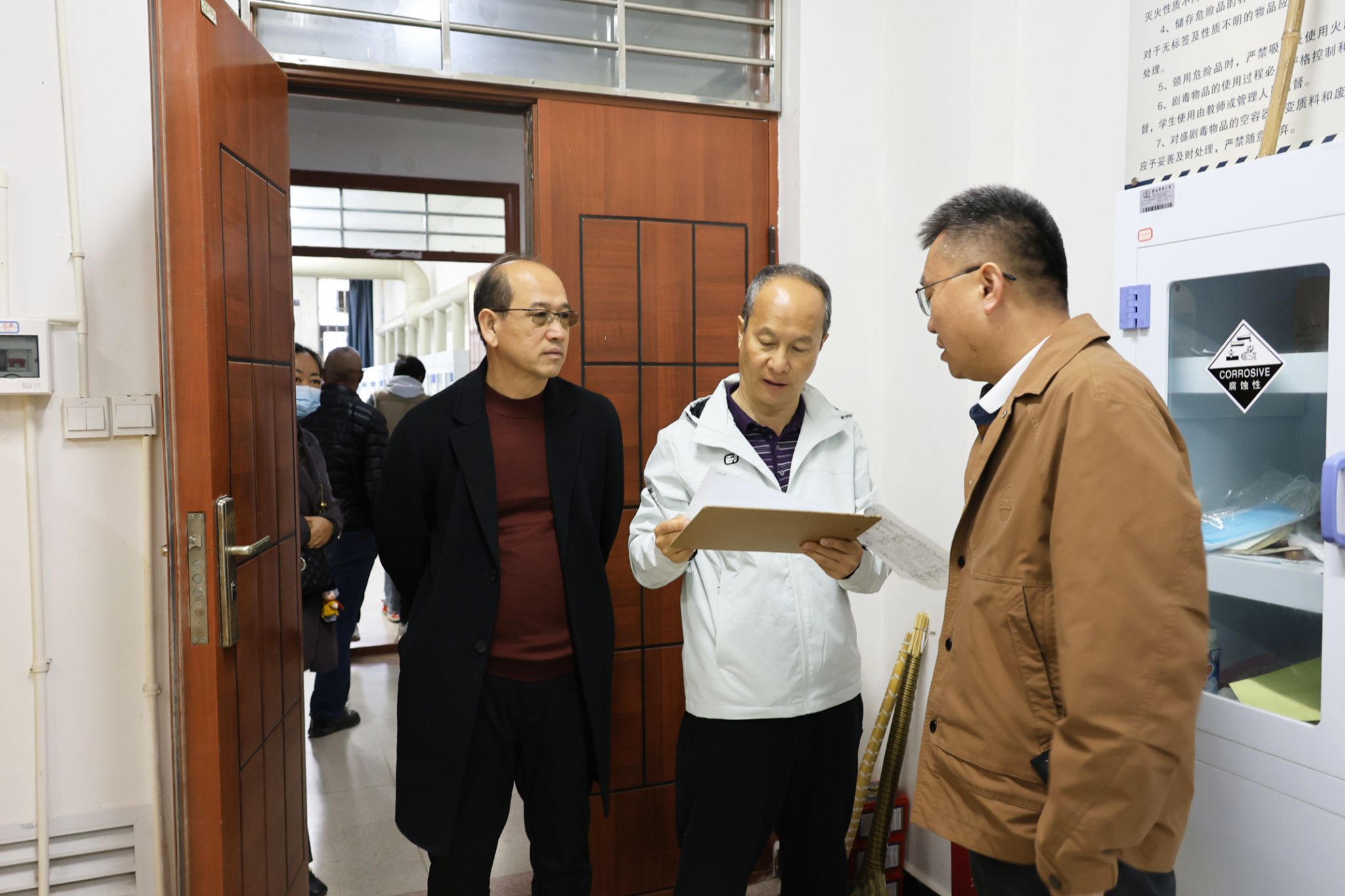为切实保障校园安全稳定,营造平安和谐的学习生活环境,2025年12月7日上午,学校副校长李宏带队到热带作物学院开展校园安全隐患专项检查,对学生宿舍、教学教室、实验室、食堂、多功能体育馆在建项目等重点区域进行了全面细致的安全隐患排查。学院领导班子及相关科室负责人陪同检查。