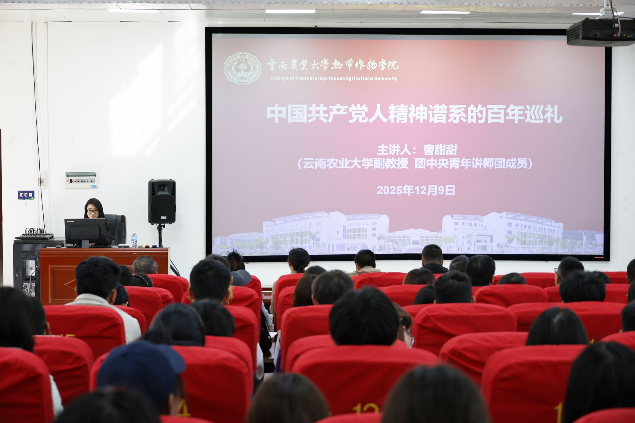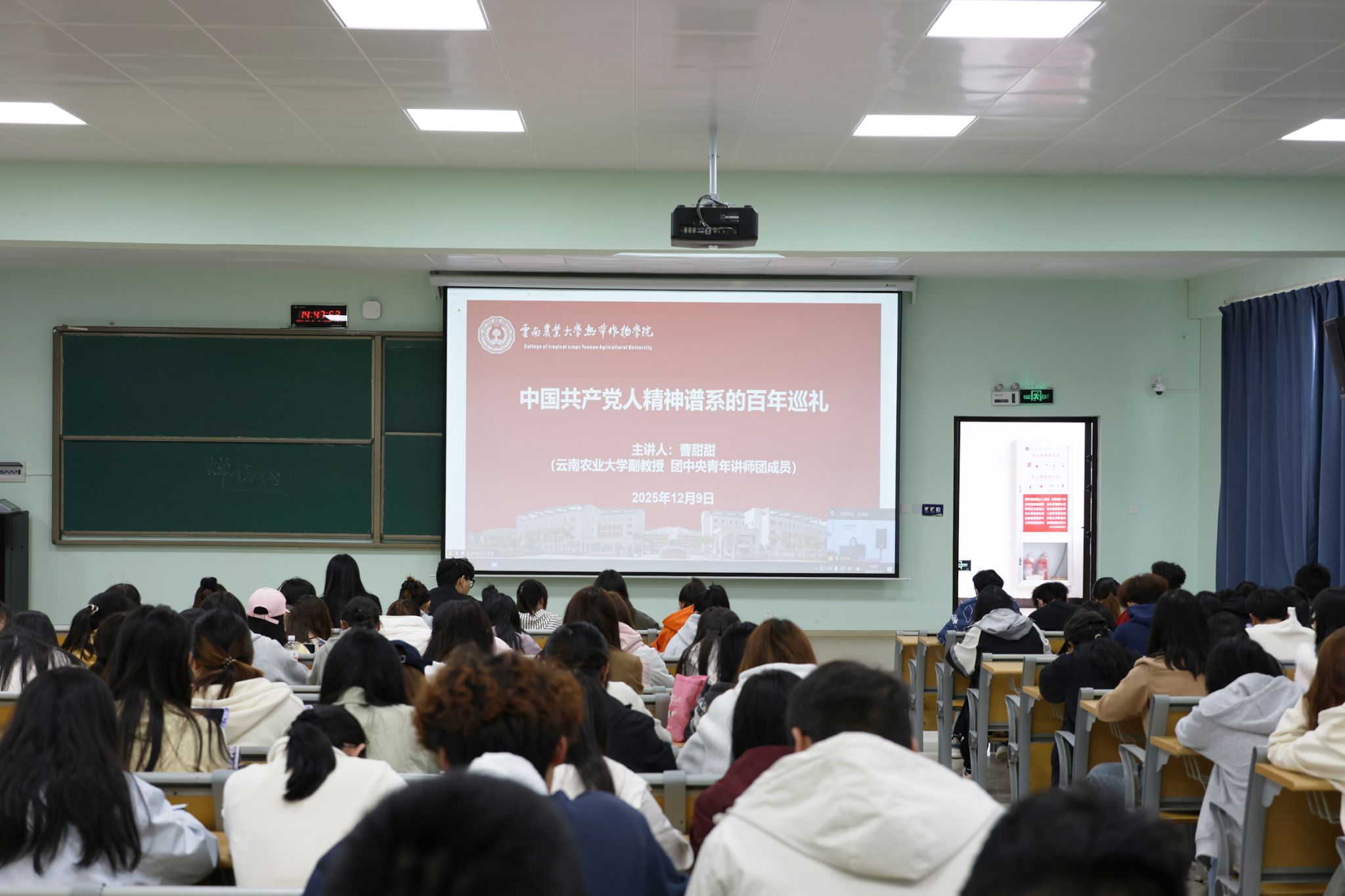 活动特邀云南农业大学马克思主义学院曹甜甜副教授授课。作为“兴滇英才”教育人才与青年宣讲团核心成员,曹甜甜从中国共产党人精神谱系的内涵特征、发展动力、逻辑体系及赓续路径四个维度展开讲解。她以伟大建党精神为源头,系统梳理精神谱系在革命、建设、改革时期的发展脉络,精准阐释核心要义,并结合教育科研实际,阐明精神传承的实践要求,授课深入浅出、兼具理论高度与实践温度。