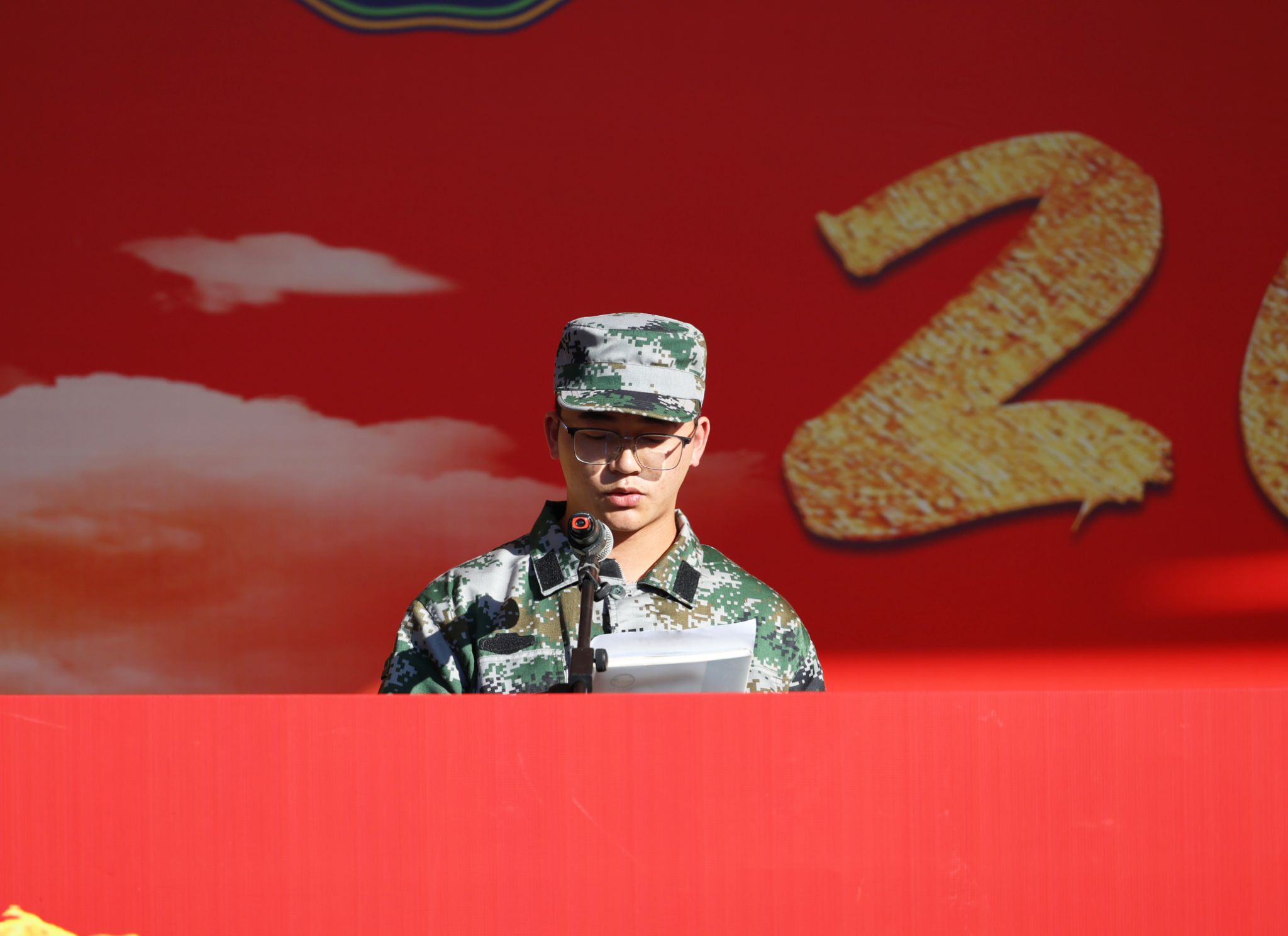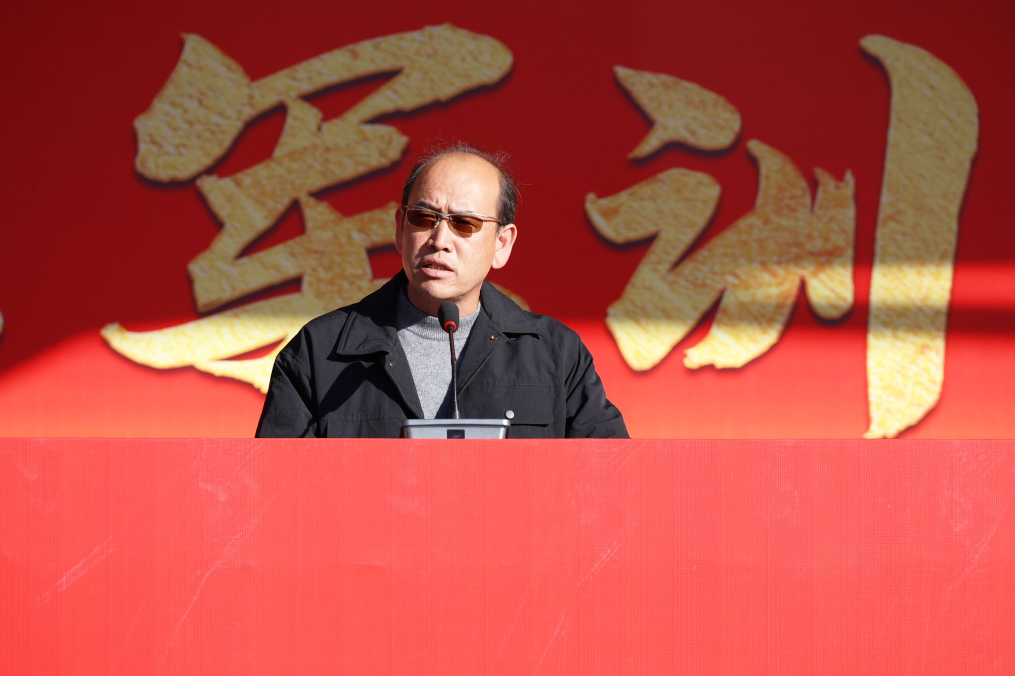 院长杨学虎作动员讲话,他指出军训是全面贯彻党的教育方针、落实习近平强军思想的重要实践,是全民国防教育的重要一环,是落实立德树人根本任务、培塑时代新人的关键途径。他对全体参训学生提出三点要求,一是端正态度,刻苦训练;二是尊重教官,听从指挥;三是严守纪律,确保安全。他勉励新生们要增强国防观念与国家安全意识,厚植爱党、爱国、爱军的真挚情感,珍惜此次磨砺机会,将军训中收获的坚韧与担当,转化为未来成长路上的强大动力,筑牢报国成才的思想根基。