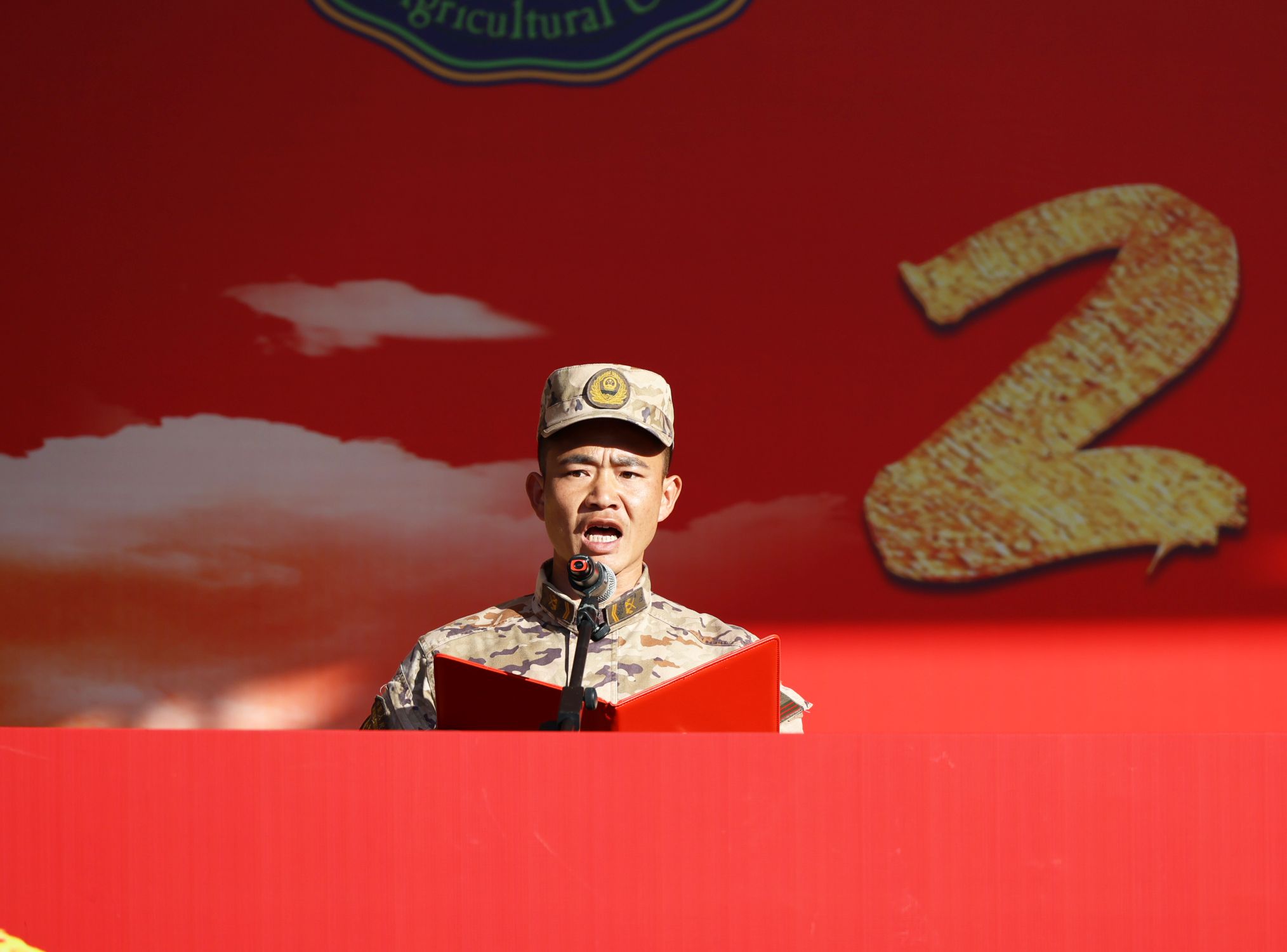 2025年12月19日,热带作物学院举行2025级新生军训开训仪式。普洱市军分区战备建设处副处长杨安定,武警普洱支队中校副支队长王文飞,武警普洱支队中队长罗坤上尉(担任本次军训营营长),学院党政领导班子出席仪式,全体承训教官、2025级全体新生及辅导员参加。仪式由学院党委副书记李晶晶主持。