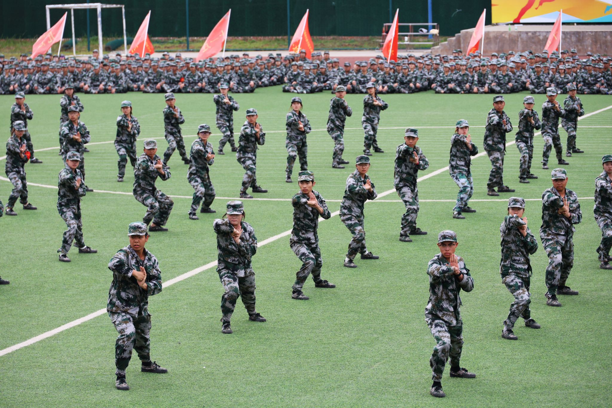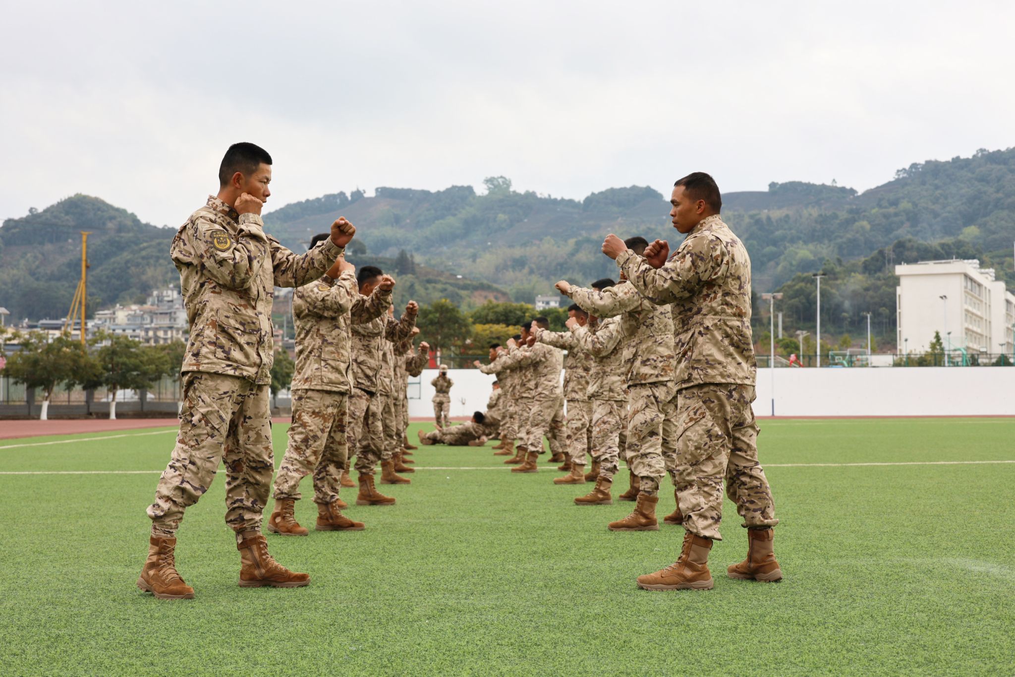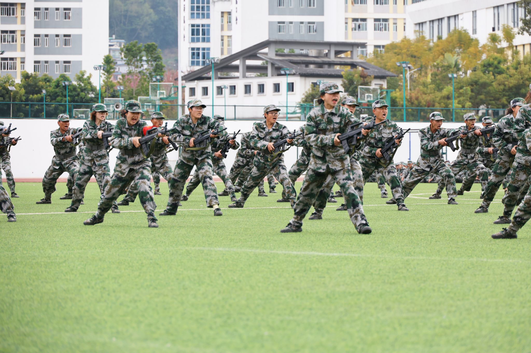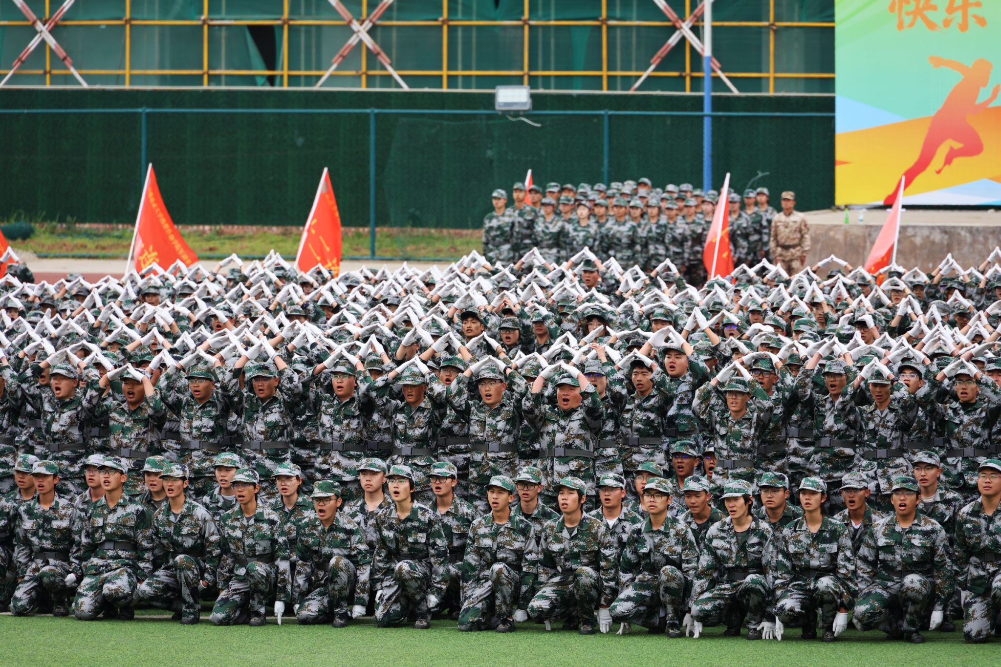 大会在庄严的国歌声中拉开序幕。汇报展演环节,参训方队依次展现“厚德博学 明理尚农”“开学养正 耕读至诚”“我爱热院”等主题字样,瞬间点燃现场气氛。随后,队列、军体拳、刺杀操等军训成果逐一呈现,同学们动作整齐划一、口号铿锵嘹亮,以饱满的热情和昂扬的斗志,充分展现了21天军训的扎实成效与新时代青年的青春风采。