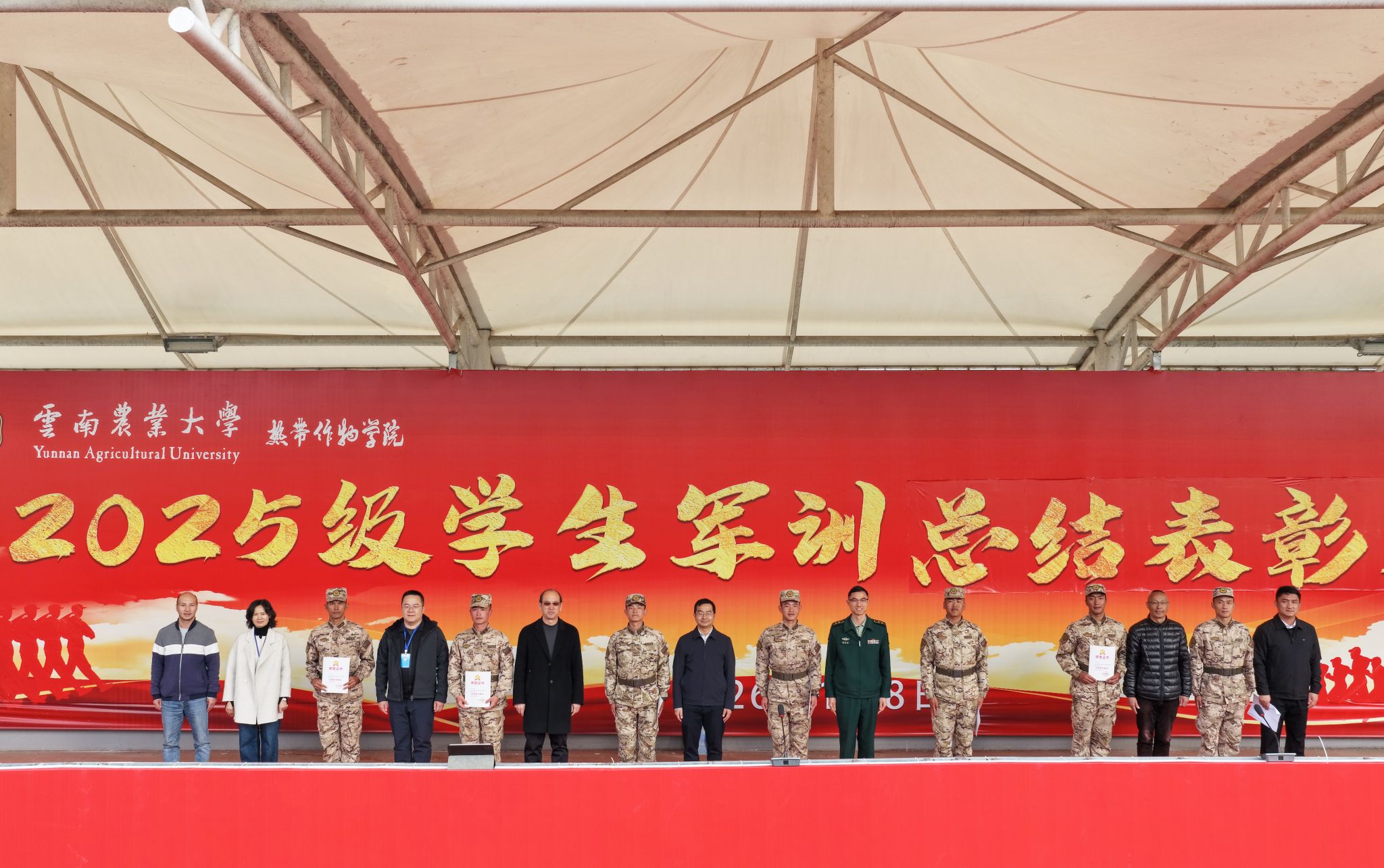 2026年1月8日,热带作物学院举行2025级学生军训总结表彰大会,标志着为期21天的军训生活画上了圆满的句号。学院党政领导班子,武警普洱支队政治工作处主任姚志兴中校,武警普洱支队中队长罗坤上尉(担任本次军训营营长)出席军训总结表彰大会。大会由学院党委副书记李晶晶主持。