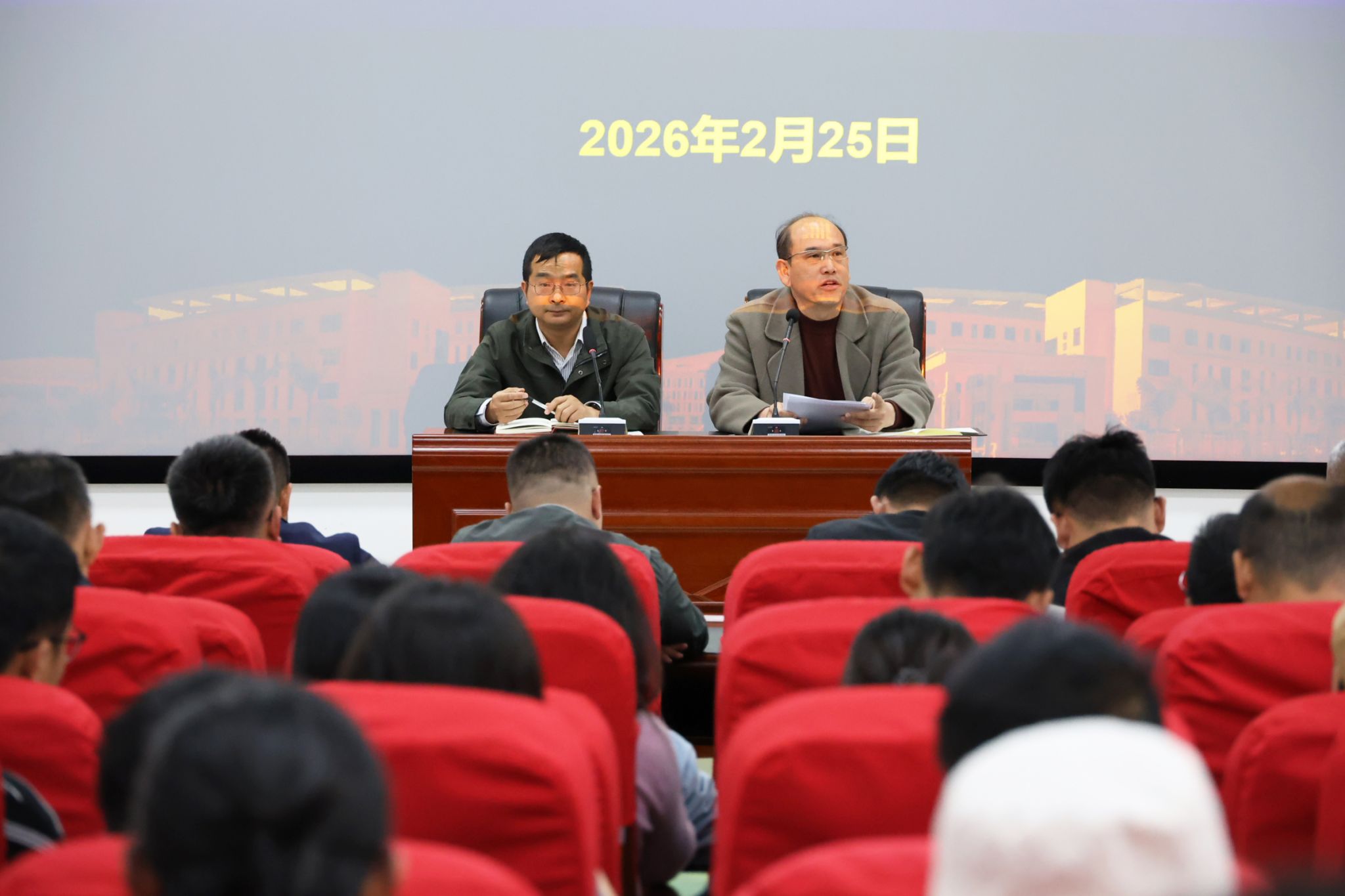 党委书记湛方栋传达学习了学校相关会议精神,并就新学期工作提出要求。他指出,2026年是“十五五”规划开局之年,也是学院深化整改提升、加强内涵建设、推动重点突破的关键之年。全院上下要统一思想、凝聚共识,以更高标准、更实作风、更硬举措,聚焦立德树人根本任务,狠抓工作落实,奋力推动学院在党建引领、学科建设、人才培养、教学科研、社会服务等方面取得新进展、实现新提升。