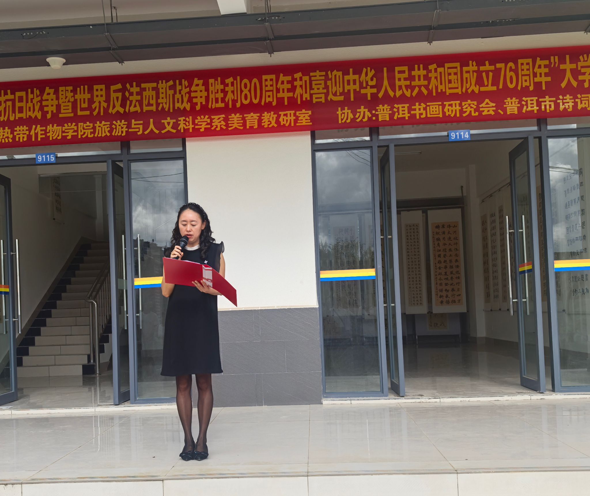 本次活动由旅游与人文科学系美育教研室主办,普洱书画研究会、普洱市诗词楹联协会协办。学院副院长李学俊、教务科科长裴莉、旅游与人文科学系主任李昳华,普洱书画研究会主席黄廷选、普洱市诗词楹联协会主席赵成林、美育教研室主任岩都等出席活动。
