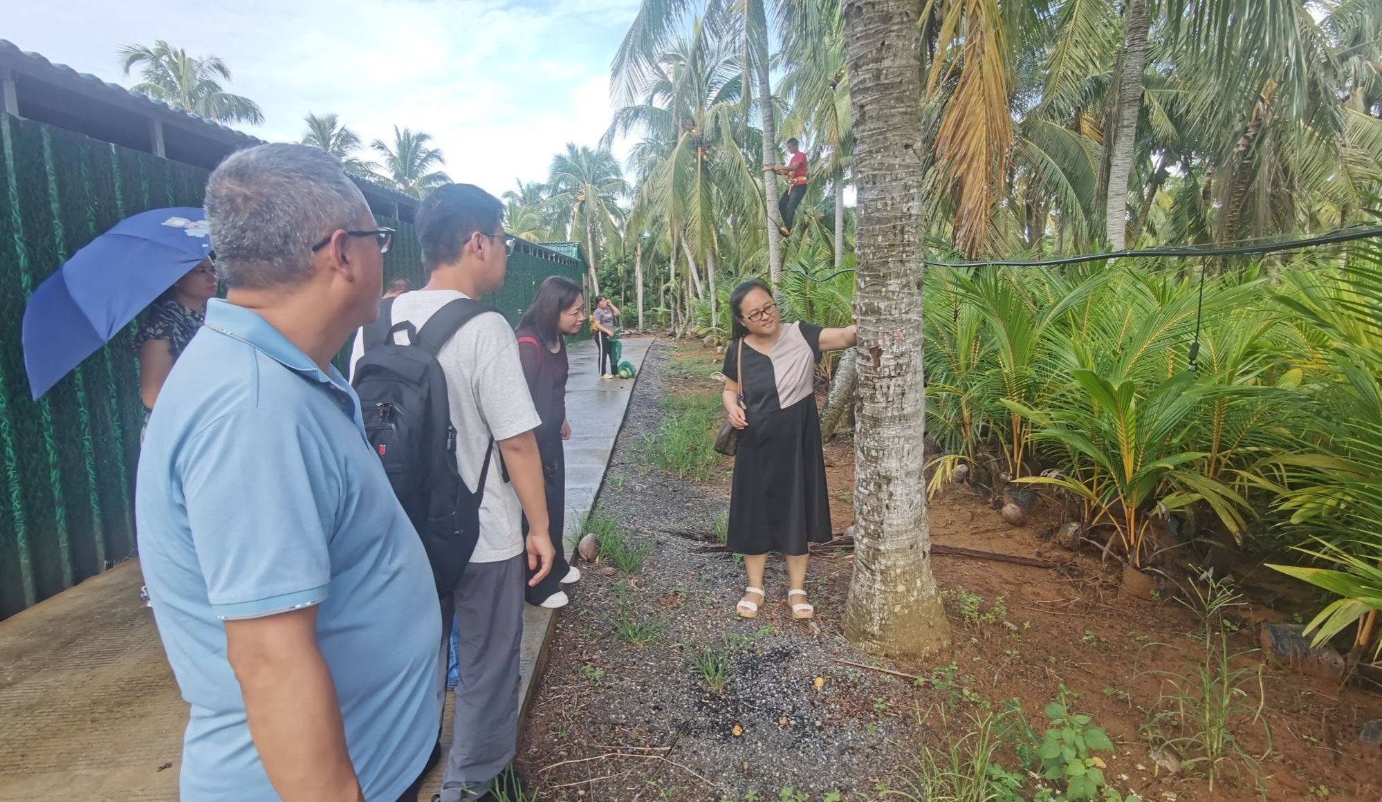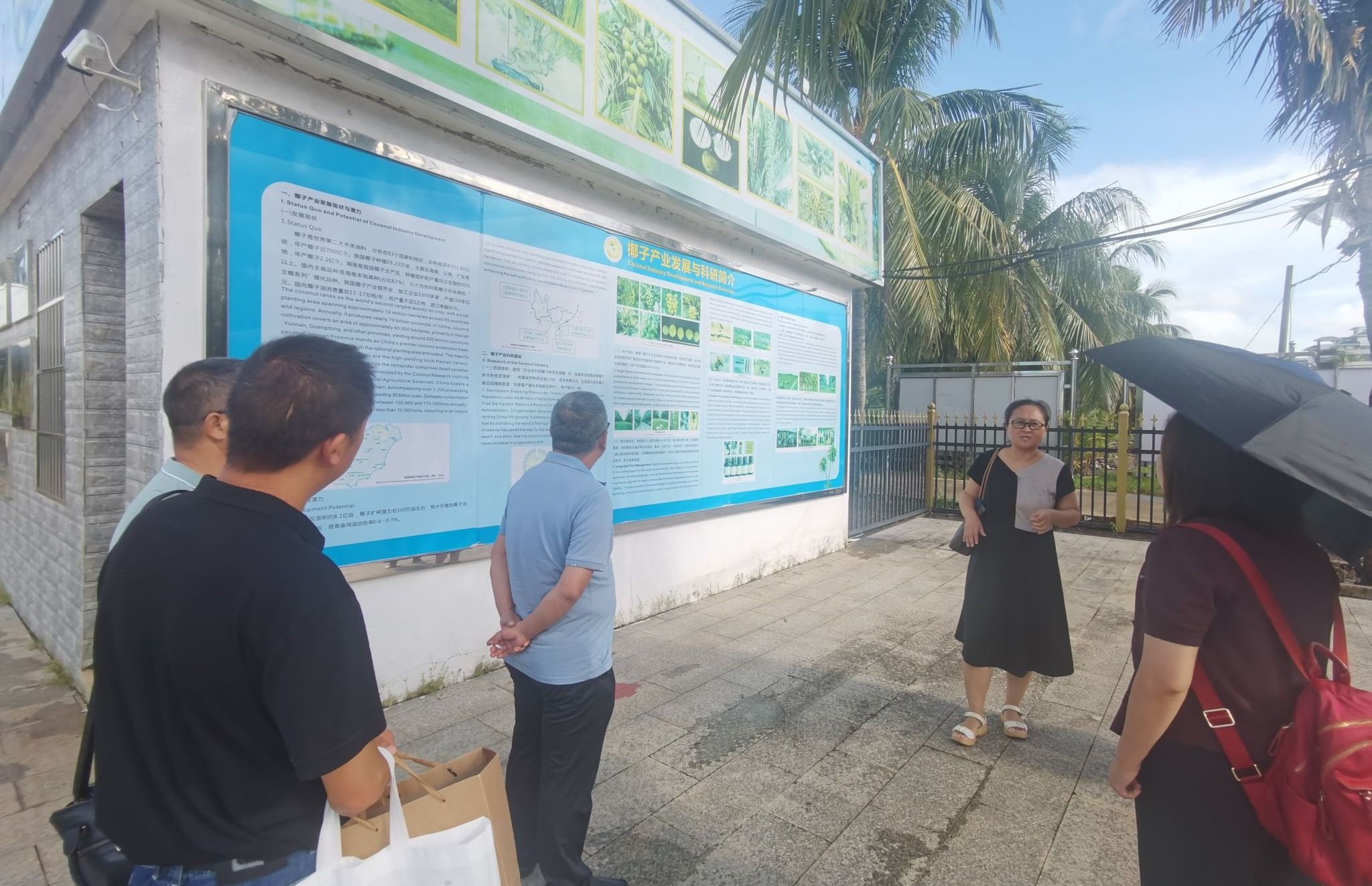 9月18日,团队赴文昌椰子研究所调研,实地探访了椰子种质资源圃与椰枣种质资源圃。研究所详细介绍了椰子、柚棕、油橄榄、椰枣、槟榔、油茶等六中油料作物品种的研究成果与现状,并重点探讨了椰子与椰枣在学生论文中的选题方向。