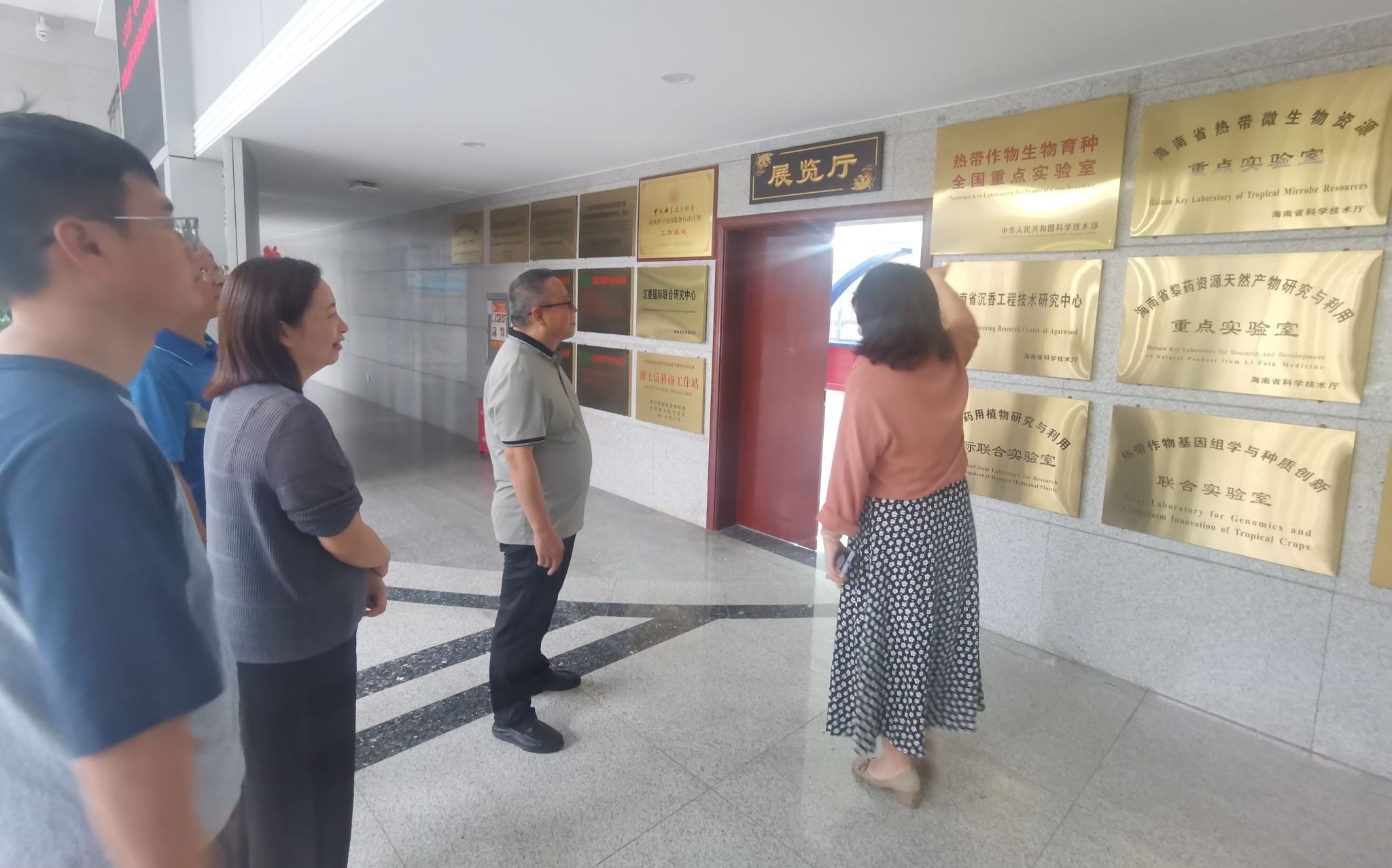 9月17日,团队前往儋州品种资源研究所,与所内热带花卉实验室的研究人员(含我方实习学生)展开深入交流,围绕朱顶红、三角梅、红掌等品种在园林观赏方向的应用进行了学术探讨,并实地参观了研究所的花卉栽培大棚,深入考察了其新品种培育成果。