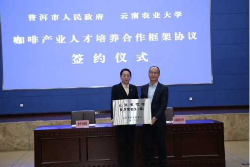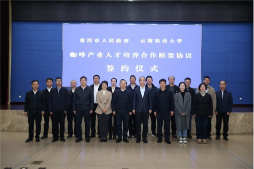 2025年3月20日,普洱市政府与云南农业大学举行咖啡产业人才培养合作框架协议签约仪式。市委常委、市委组织部部长谷雨主持仪式,市政府副市长别燕妮、云南农业大学副校长李宏等领导出席活动,市委组织部、云南农业大学、市政府办、市人力资源社会保障局、市教育体育局、市科技局、市农业农村局、市茶咖发展中心、云南省高原特色农业产业研究院、思茅区农民院士科技服务站等相关单位领导及代表参加仪式。