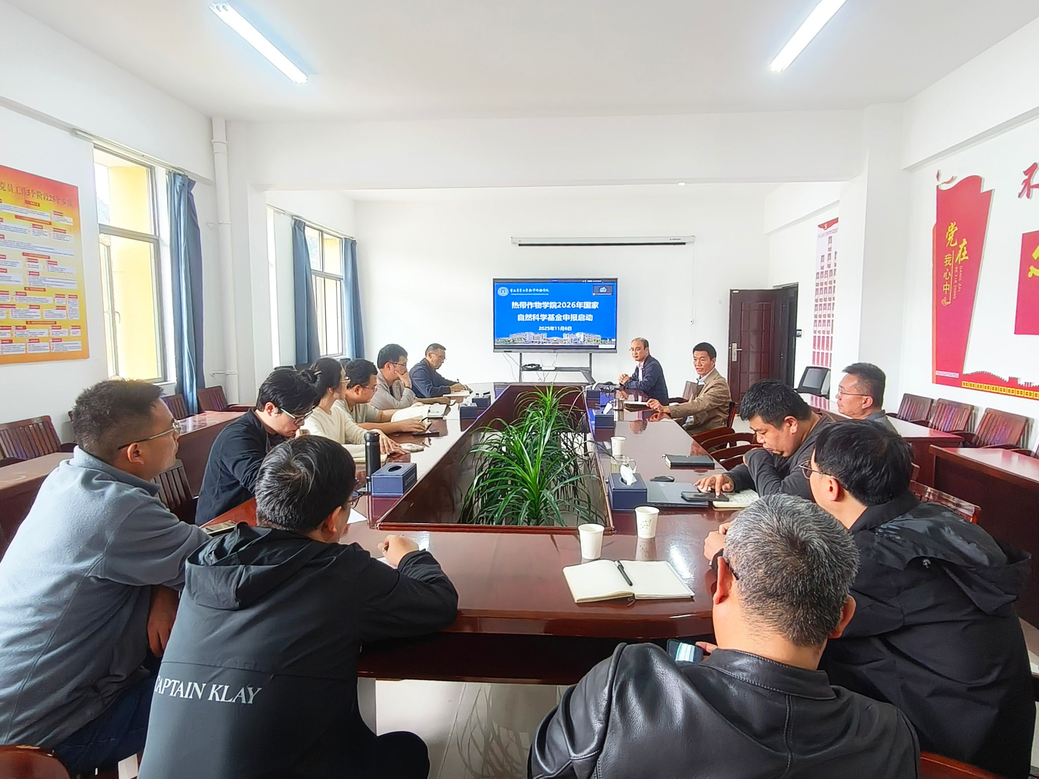 为全力推进2026年度国家自然科学基金项目申报工作,夯实申报质量,赋能学校基础研究与科技创新实现高质量发展,2025年11月6日云南农业大学召开2026年度国家自然科学基金申报动员暨培训会,热带作物学院组织分会场,学院分管科研工作的副院长李学俊主持会议,科研信息与社会服务科负责人、申报2026年度国家基金项目全体科研人员线上参加会议。