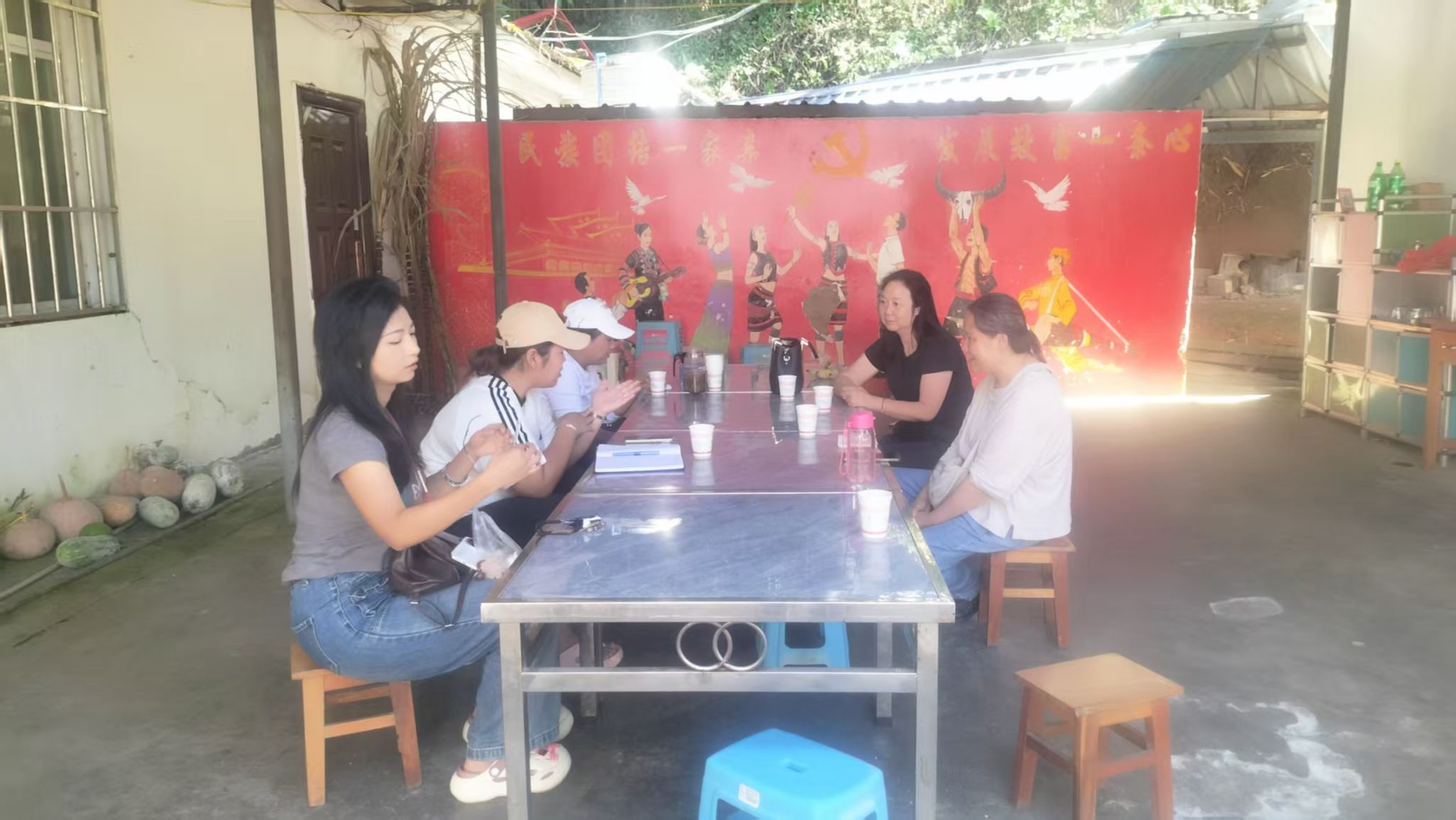 在叶恩书记的陪同下,服务团队一行四人先后深入双相村一组、三组,实地考察村小组进组路至会议室沿线的绿化美化建设情况。期间,双方就人居环境提升工作展开深入探讨,重点对接杨明艳副教授负责的“三区”服务项目——“植绿护绿·绿化家园”,围绕推进“绿美行动”具体内容,结合该村气候条件、土壤特性及景观需求,对绿化苗木的选用种类、种植方案等进行专业分析与讨论。