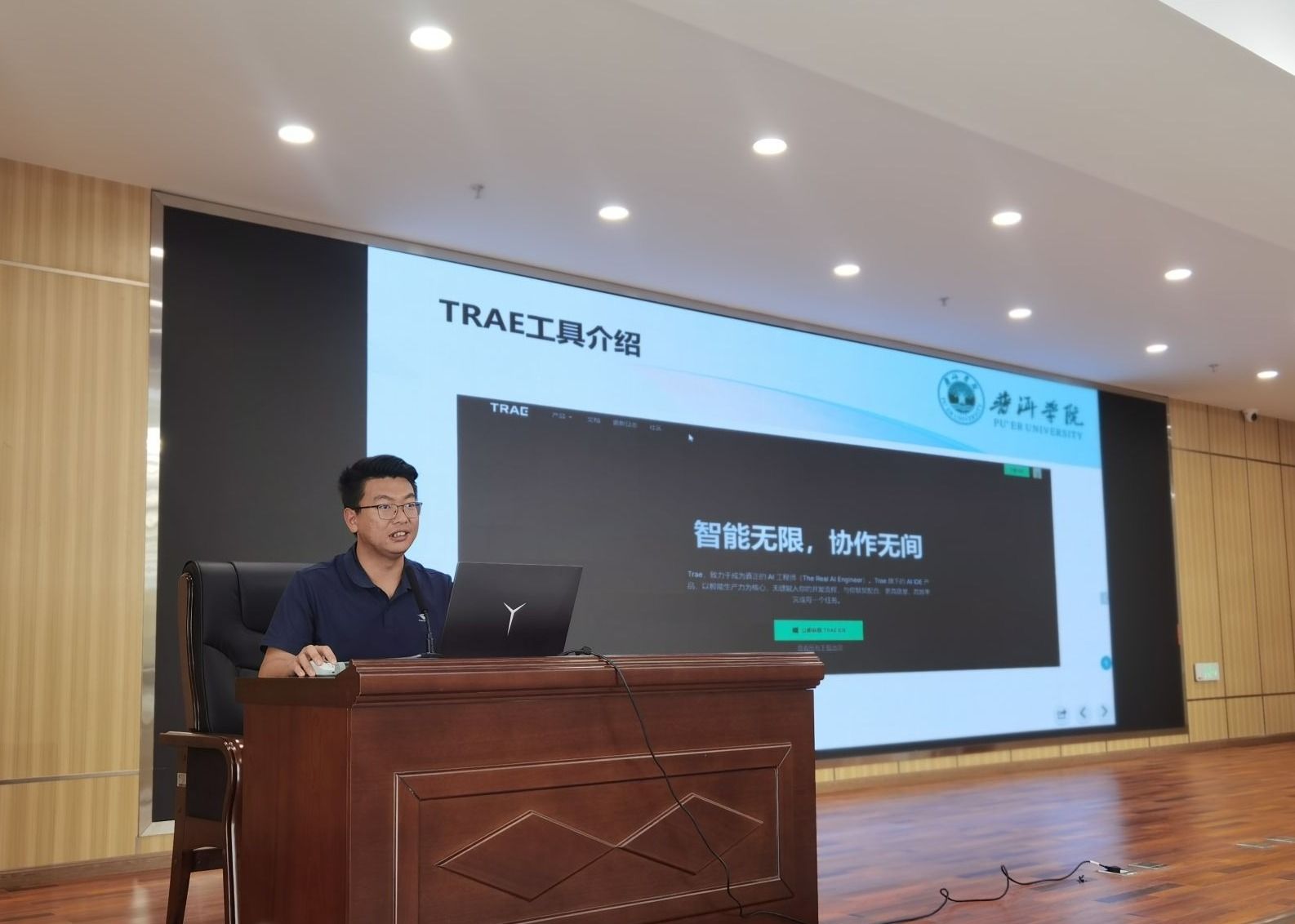 为助力师生紧跟 AI 技术发展前沿,园林与建筑工程系于 2025 年 10 月 29 日在图书馆报告厅,特别邀请普洱学院科技处处长王俊杰教授和理工学院专任教师刀加旭老师,分别围绕 “AI 算法基本原理及其应用实践” 与 “AI 辅助编程实践:基于深度学习的茶叶病害图像分类” 主题举办专题讲座。这两场讲座吸引了园林与建筑工程系数百名师生到场聆听,现场洋溢着浓厚的学术氛围。